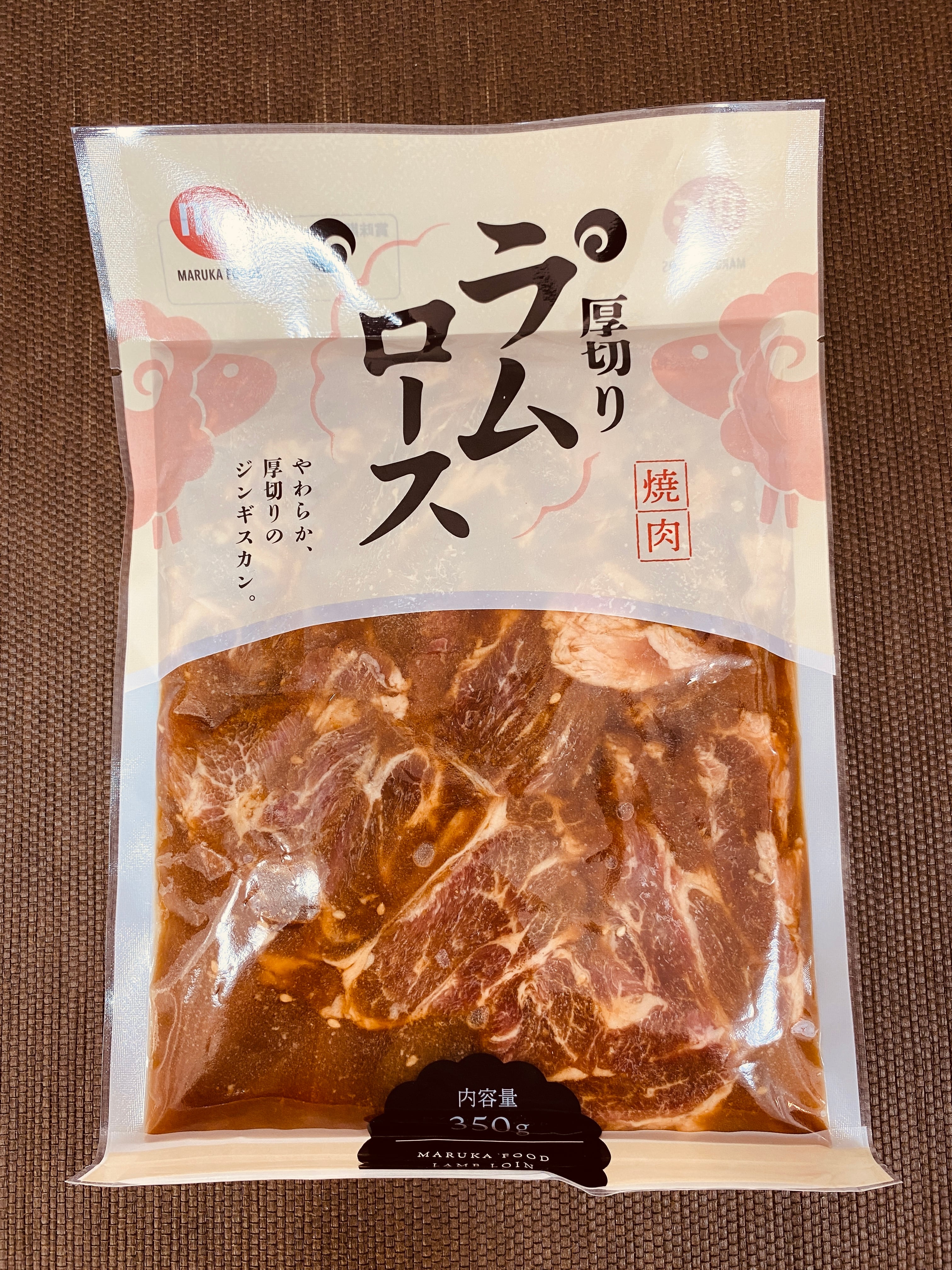 羊肉(オーストラリア産)、醤油、砂糖、清酒、米発酵調味料、生姜、還元水飴、食塩、ごま/調味料(アミノ酸等)、リン酸塩(Na)、カラメル色素、酸味料、香辛料抽出物、香料、(一部に小麦・大豆・乳成分・ゼラチン・鶏肉・豚肉・ごまを含む)